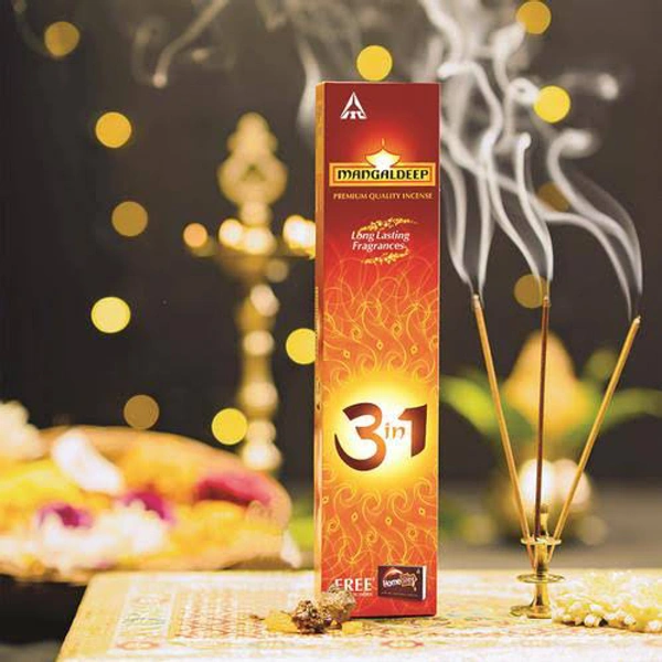 Mangaldeep 3in1 Agarbatti - Premium, Charcoal Free Incense Sticks