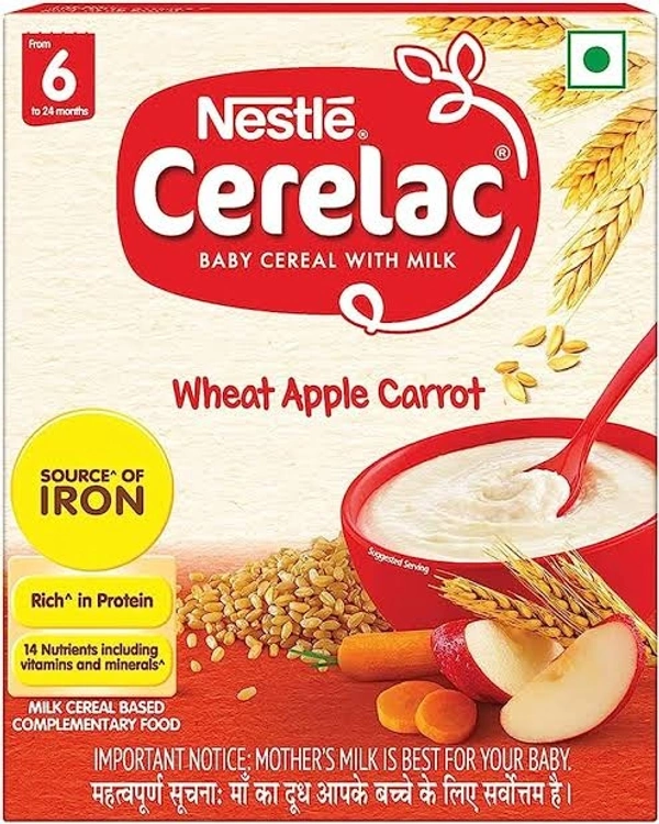 Nestle Cerelac Baby Cereal with Milk , Wheat Apple Carrot ,Stage 1, From 6 to 24 Months , Source of Iron & Protein