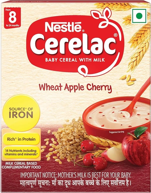 Nestle Cerelac Baby Cereal with Milk , Wheat Apple Cherry ,Stage 2, From 8 to 24 Months , Source of Iron & Protein