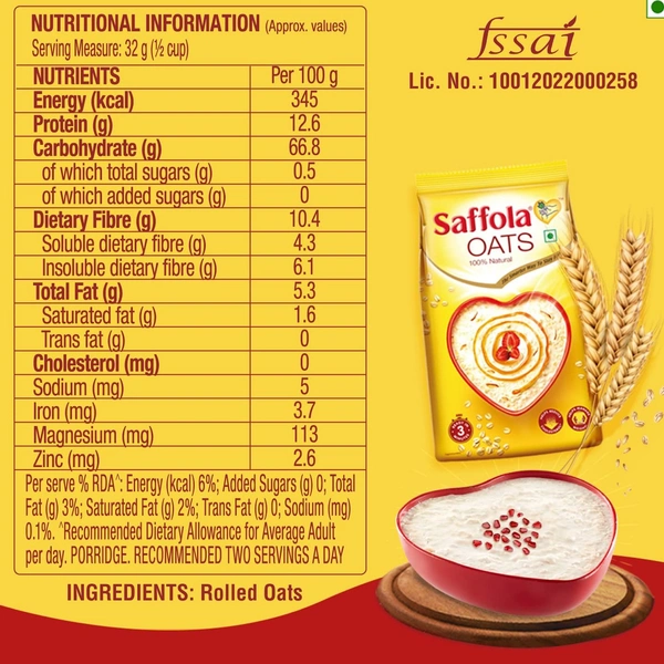 Saffola Oats | Rolled Oats | Delicious Creamy Oats | 100% Natural | High Protein & Fibre | Healthy Cereal for weight loss |